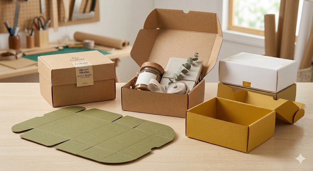 Hộp giấy xếp hông (hay còn gọi là hộp gấp dẹp, hộp gập hông) là...